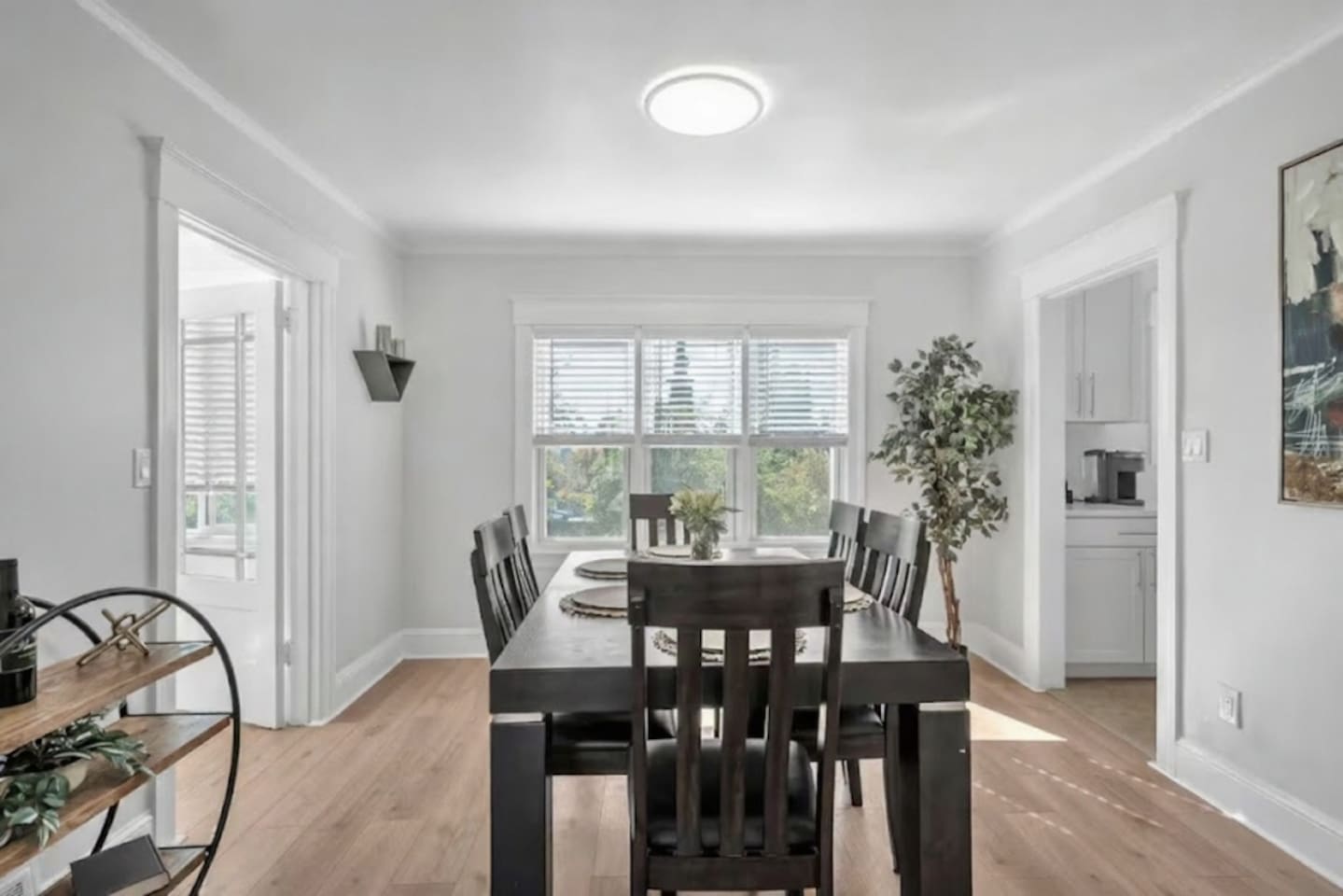 The heart of our home is the modern, well-equipped kitchen—featuring everything you need to prep a feast or just pour a glass of wine! 🥂 You'll find a fridge, oven, microwave, Keurig coffee maker, blender, toaster, and all the cookware and utensils you could need. The large dining table is ready for your family brunch or evening gathering.