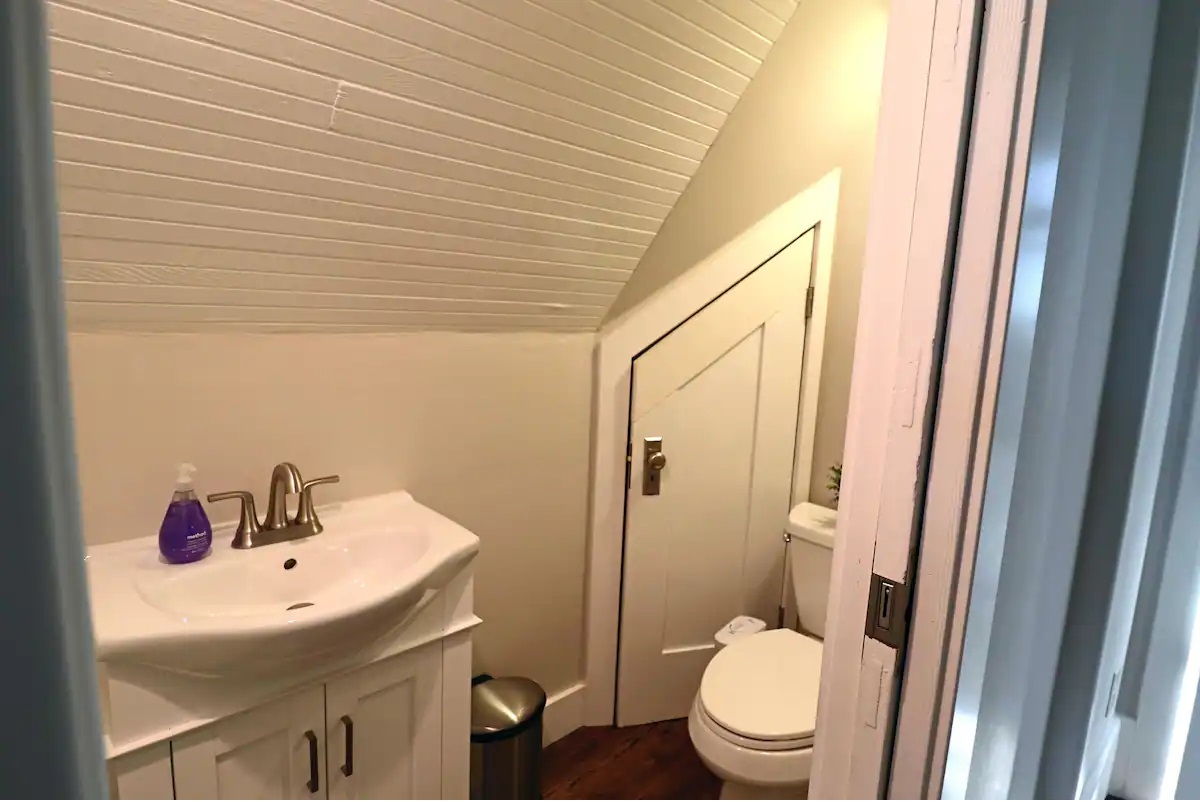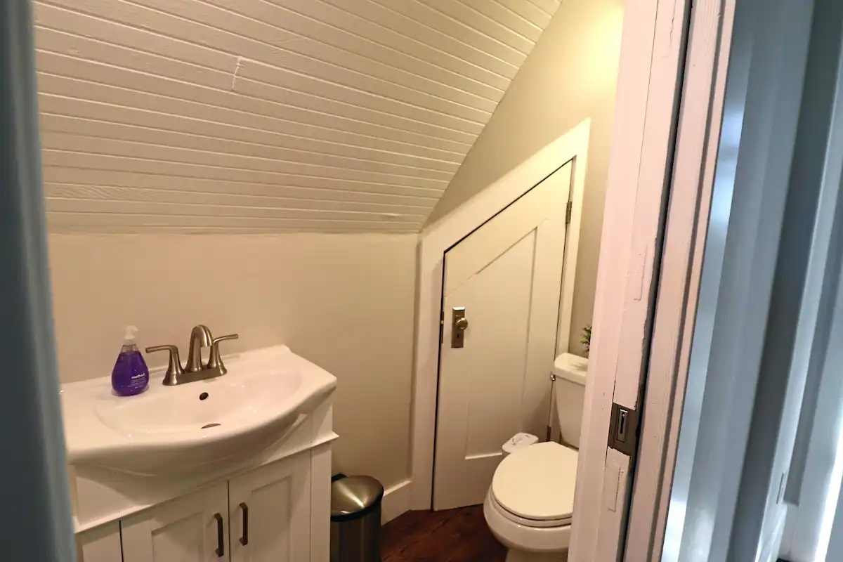 There are 2.5 bathrooms: two full baths upstairs and a convenient half bath downstairs. All full bathrooms are stocked with body soap, shampoo, conditioner, shower gel, hot water and fresh towels. Every guest can count on essentials being ready and well organised.